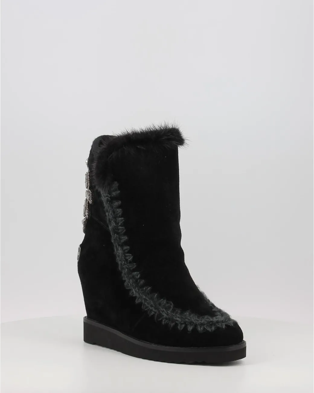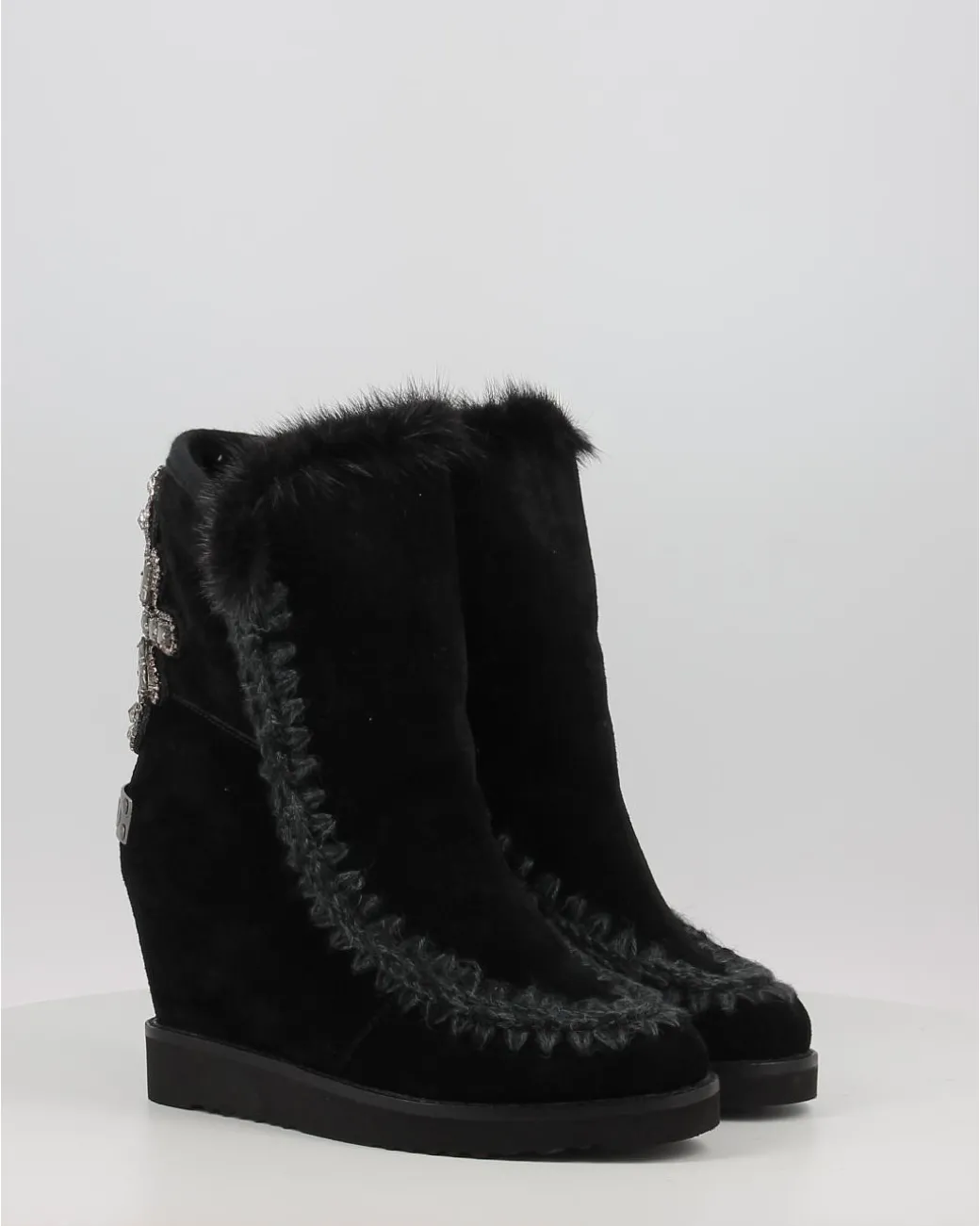 Botas Mou French Toe Wedge Back Patch Cross Negro