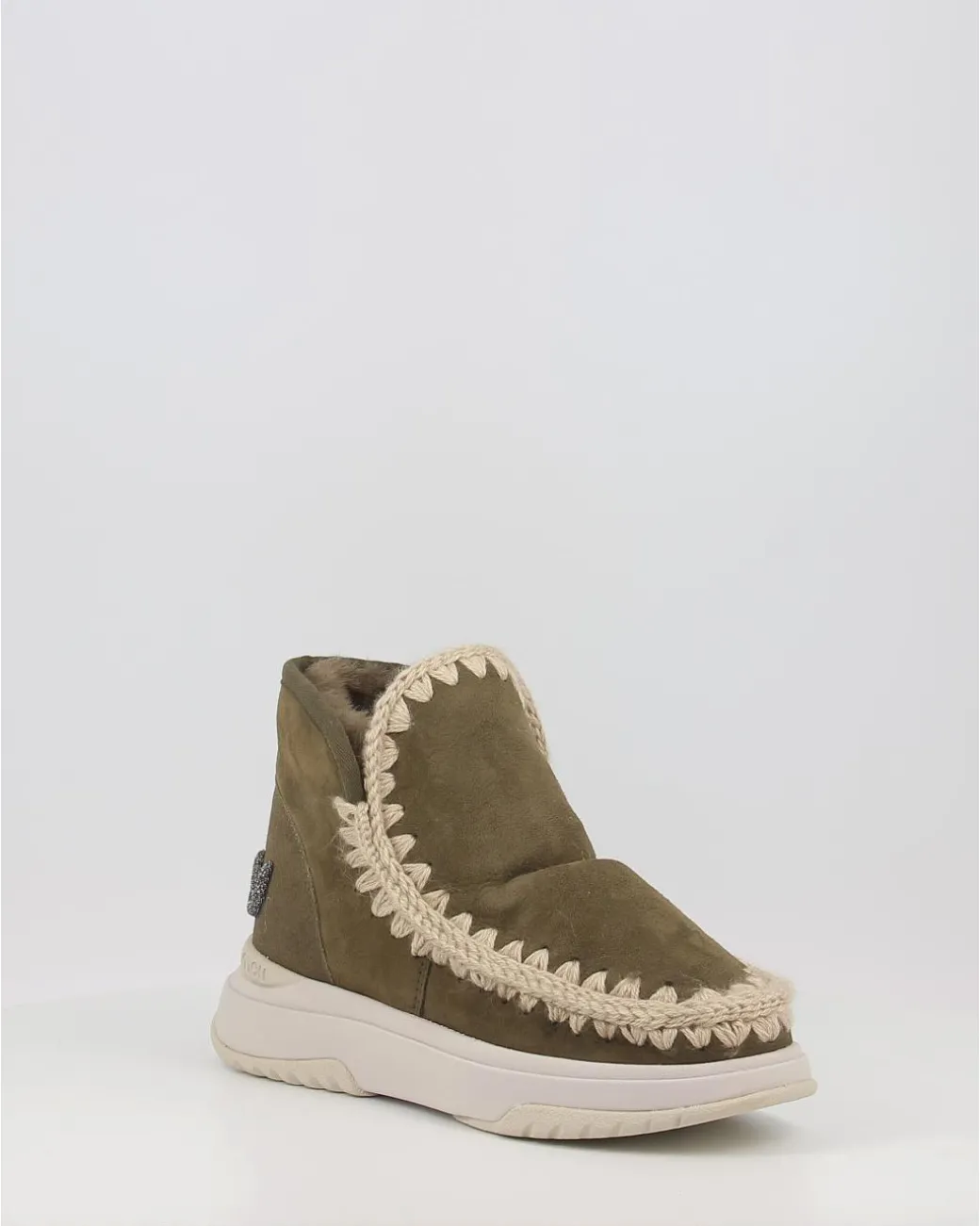 Los Botines Para Dama De Mou Jogger Glitter Logo Moo En Color Verde Han Sido Confeccionados En Piel De Oveja Por Perfectos Artesanos Y Presentan Costuras De Lana En Su Hermoso Diseno.