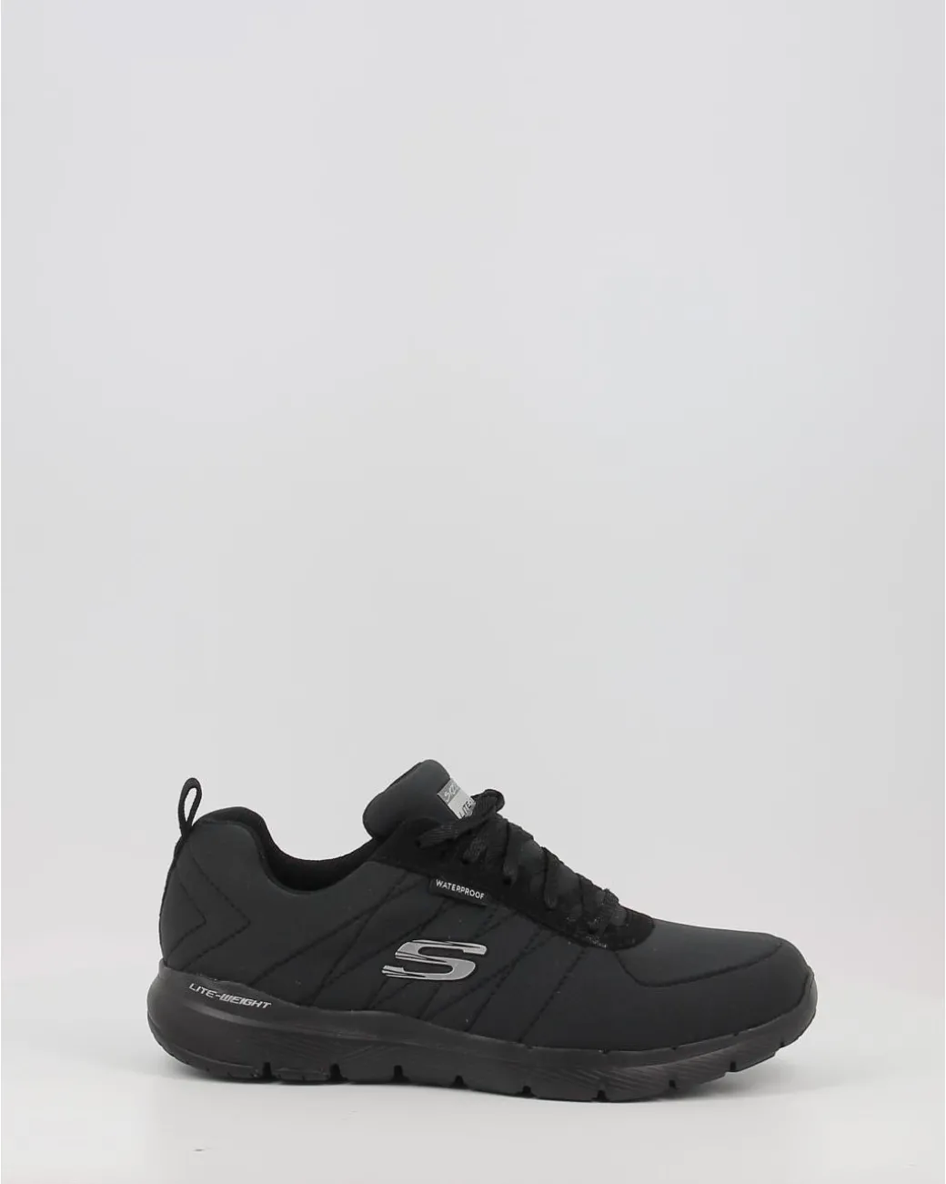 Las Deportivas Waterproof Planos Skechers Flex Appeal 3.0 – Jer’see 88888400 En Color Negro Son La Opcion Perfecta Para Aquellas Mujeres Activas Y Que Buscan Un Calzado Versatil Y Resistente. Su Diseno Elegante Y Moderno Las Convierte En El Complemento Ideal Para Cualquier Outfit De Invierno.