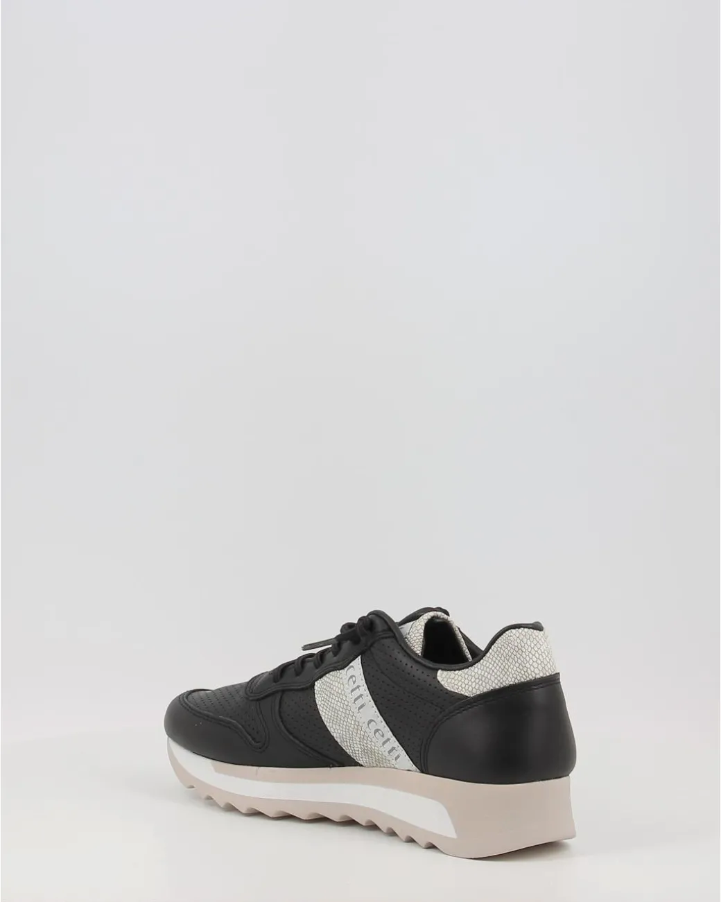 Estos Zapatos Deportivos Cetti 847 Para Mujer, Con Plataforma De 3.5 Cm De Altura De Goma Elastica Y Plantilla Extraible En Eva, Amortiguan Cada Uno De Tus Pasos Y Te Ofrecen Un Confort Total Durante El Dia. Ademas, Poseen Un Diseno Glitter Con Tonos Metalizados En Plata Para Un Look Moderno Y Fresco.