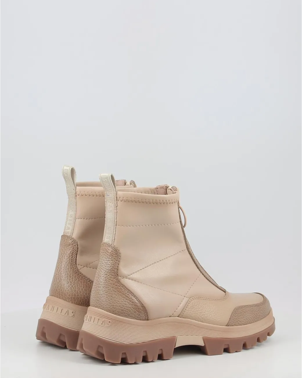 Los Botines Hispanitas, En Color Taupe De La Coleccion Meryl, Son El Calzado Perfecto Para Caminar En La Temporada De Otono. Estan Disenados Con Suela Gruesa, Estilo Plataforma, Dentada, Antideslizante Para Garantizar Una Marcha Segura. Son, Ademas, Comodos Y Suaves Porque Estan Confeccionados Con Materiales De Primera Calidad. Tienen La Cremallera En El Frente Y El Logo De La Marca Grabado, En Relieve, En La Suela.