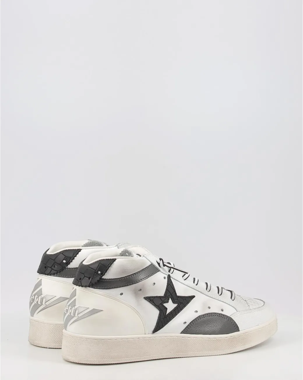 Los Zapatos Deportivos Cetti 1267 Blanco Presentan Un Diseno Clasico De Zapatillas Deportivas, De Lineas Rectas Y Detalles En Negro. En La Puntera Incorporan Microperforaciones Para Una Mejor Ventilacion De Tus Pies, Que Tambien Ofrecen Una Apariencia Vintage. En La Parte Trasera Incluyen El Logo De La Marca Con Un Relieve Que Los Hace Unicos. Las Zapatillas Son De Cuello Alto Para Una Mayor Proteccion Del Tobillo. La Suela Es Plana, Con Una Altura De 4 Cm. La Lengueta Tambien Tiene Impreso El Logo De La Marca. Poseen Un Tradicional Cierre De Cordones Elasticos Que Te Proporcionan Un Excelente Ajuste.